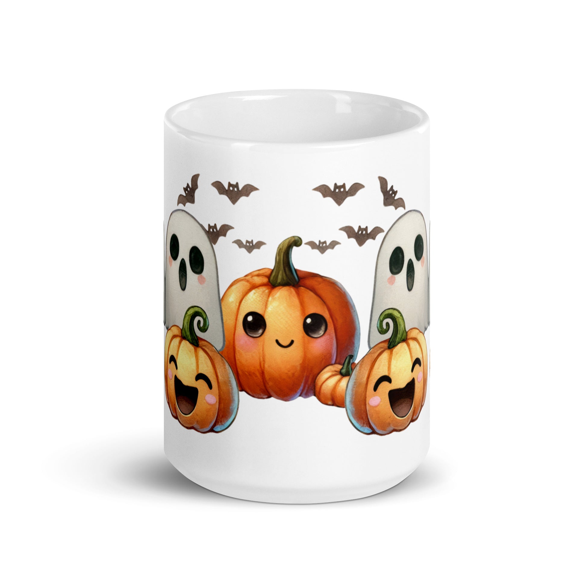 Start your mornings with a BOO-tiful twist using our Halloween coffee mug! Featuring an adorable design of cute pumpkins and friendly ghosts, this white mug is perfect for sipping your favorite brew while embracing the Halloween spirit. Whether you're enjoying a cozy fall morning or fueling up for some festive fun, this mug is sure to add a dash of spooky-cute charm to your day! It's sturdy and glossy with a vivid print that'll withstand the microwave and dishwasher.